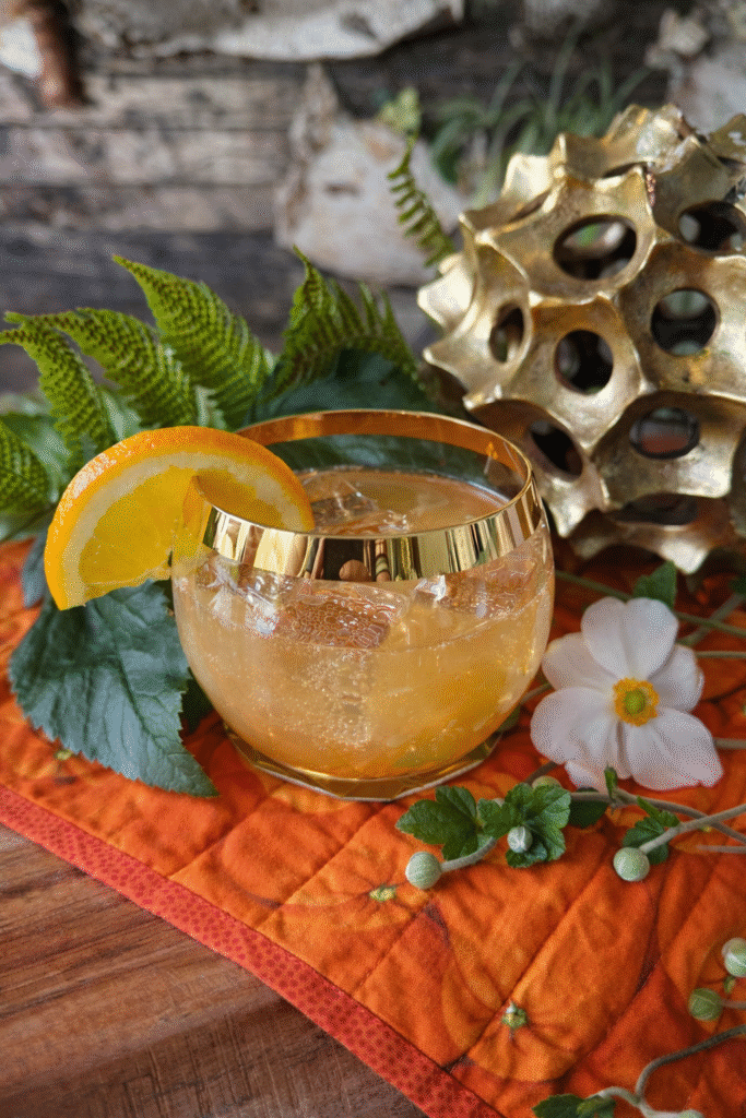 squeezed orange wedge, and bitters. Shake well to combine and chill.