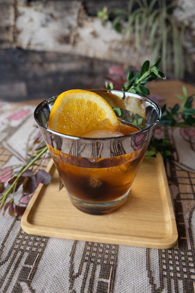 Muddle orange wheel and luxardo cherries in rocks glass Place large Ice Cube into a rocks glass. Top with WM Rose and bourbon. Stir well to combine and chill.